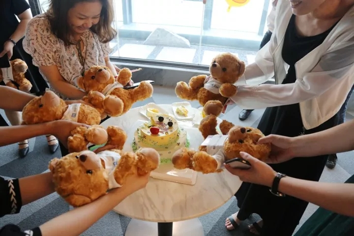 There are more than 10 staff’s birthday in the second and third quarters. Tina gave them cute bear and shopping card as well as the best wishes. They were very happy and took photos with prizes.